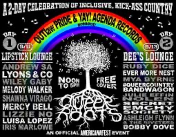 Saturday, September 13 - Noon to 5PM - The showcase's second day will be just as gay and take place at Dee's Lounge. The roster includes Ruby Dice, Ever More Nest, Mya Byrne, #QueerCountryBandwagon, Julie Effin Nolen, Secret Emchy Society, Ashleigh Flynn and The Riveters, and Bobby Dove.