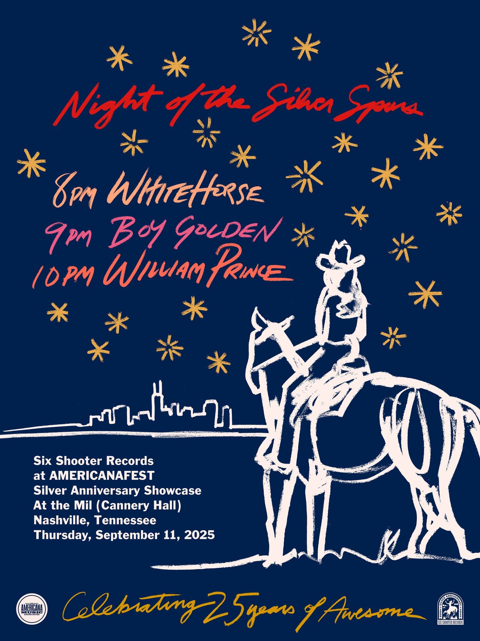 Thursday, September 11 - 8 to 10PM - Six Shooter Records celebrates 25 years of awesome with a showcase event taking place at The Mill (Canery Hall). Dubbed Night of the Silver Spurs, the lineup features White Horse, Boy Golden, and William Prince.
