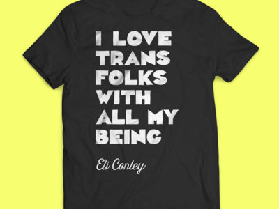 Make sure you get your own version of Eli Conley’s striking “I Love Trans Folks With All My Being” t-shirt — all proceeds will go to Eli since it’s Bandcamp Friday!