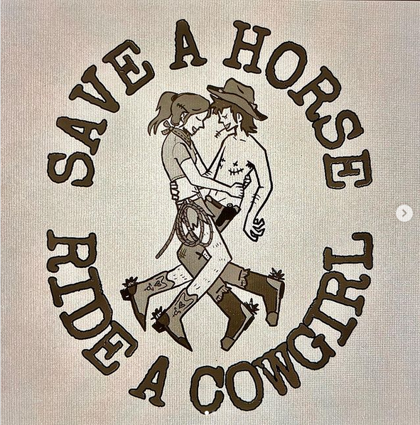 Not much more to say than this: Jaime Wyatt’s cowgirl lap dance sweatshirt. (There’s also t-shirts, shorts, and all kinds of other great stuff.)