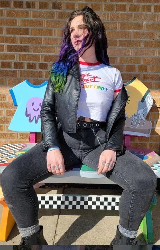 Holly Cinnamon celebrates her small-town pride with this cute trucker hat (multiple colors available!) She’s got some other great stuff at her Female Gayze merch store.